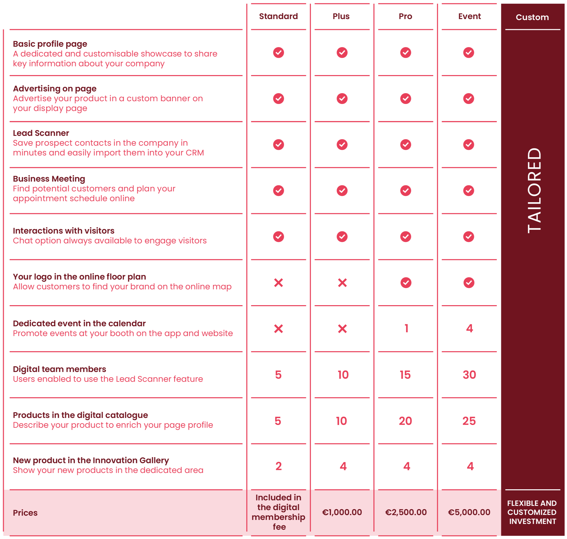 The Plus package and your logo in plan view and a dedicated event