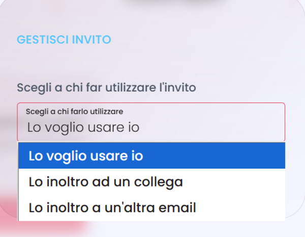 Gli invii che falliscono (dovuti a errori nell’indirizzo o server di destinazione) saranno nuovamente a tua disposizione. Alla stessa persona puoi mandare nuovamente l'invito. Il destinatario riceve un’unica e-mail di notifica e troverà gli inviti nella sua area riservata, tutti elencati come “Biglietto offerto da…” tua ragione sociale.